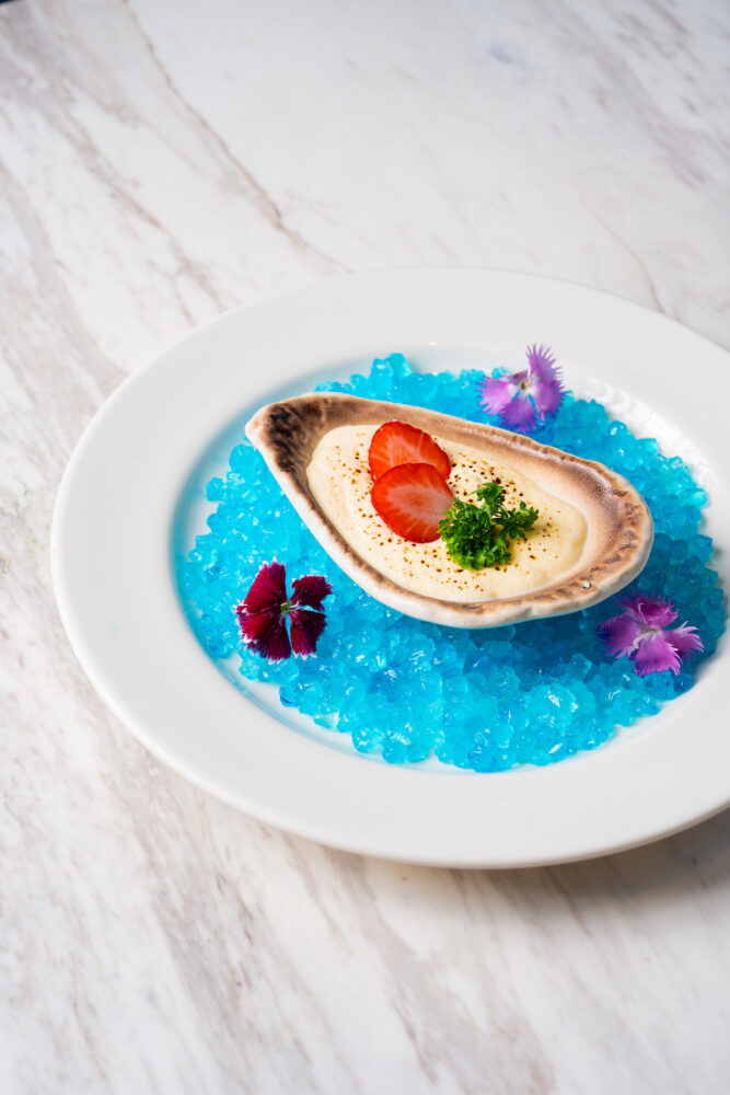- Oyster Petit Plate, Soursop Panna Cotta, Sweet Béchamel & Fresh Sachi Berry — “Mỹ vị hàu”: Panna cotta mãng cầu, xốt béchamel ngọt và dâu Sachi tươi.