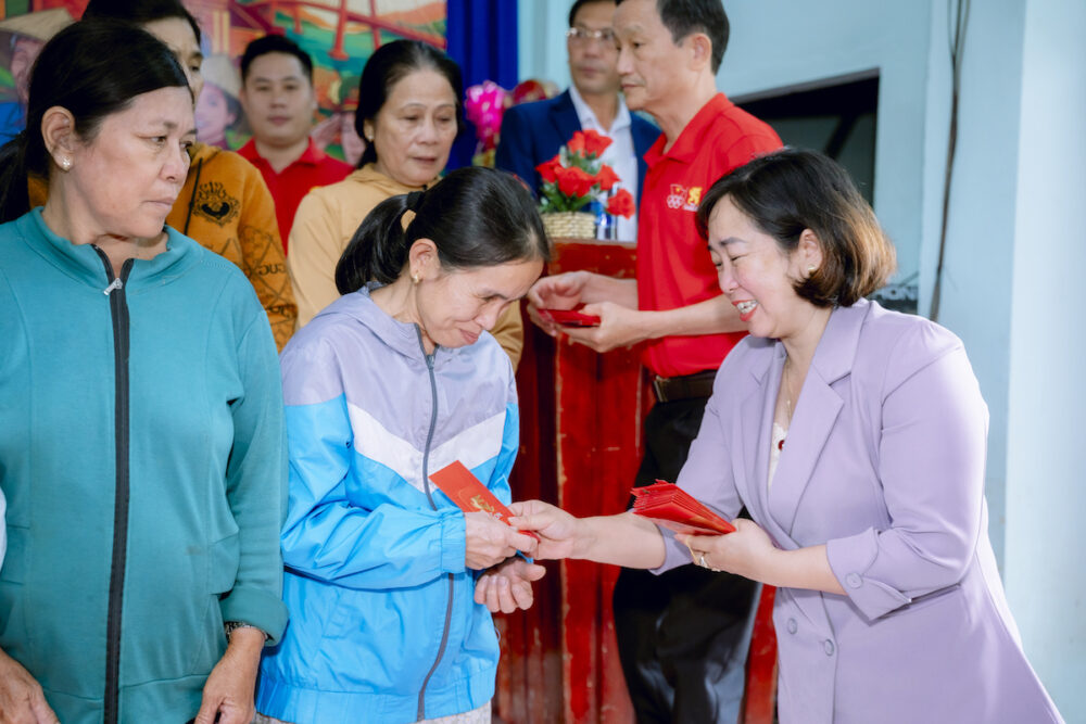 Đại diện SABECO trao tặng phong bao lì xì cho người dân tỉnh Quảng Ngãi