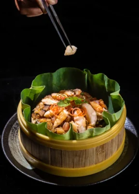 Với các món hải sản, thực khách có thể trải nghiệm Canh Cá Chẽm Phi Lê Cải Chua kiểu Tứ Xuyên, cân bằng giữa vị chua dịu và cay nhẹ đặc trưng; Càng Cua Bách Hoa giòn rụm bên ngoài, mềm ngọt bên trong, là lựa chọn lý tưởng cho những bữa tiệc chia sẻ. Khép lại hành trình ẩm thực là Bánh Nếp Hạt Dẻ Chiên, món tráng miệng mang hương vị truyền thống, giản dị nhưng đầy tinh tế.