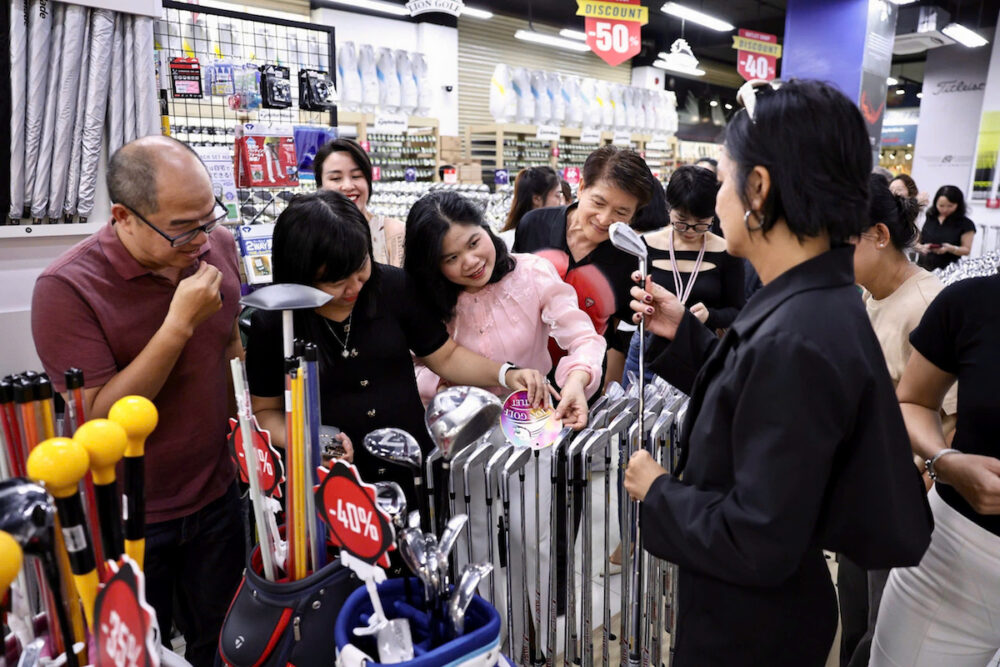 Cùng với trải nghiệm chơi golf, khách có thể tham quan không gian của Lion Golf Outlet, được giới thiệu là một trong những không gian mua sắm golf lớn nhất Việt Nam hiện nay. Lion Golf trưng bày đa dạng các sản phẩm golf chính hãng từ nhiều thương hiệu hàng đầu trong lĩnh vực này, bao gồm gậy golf, trang phục, phụ kiện và dụng cụ luyện tập, đáp ứng nhu cầu từ người mới bắt đầu cho đến golfer kinh nghiệm. Điểm khác biệt của mô hình Outlet nằm ở chính sách giá ưu đãi hấp dẫn, với mức giảm lên đến 60% cho nhiều sản phẩm, giúp người tiêu dùng dễ dàng tiếp cận các sản phẩm golf chất lượng cao với chi phí hợp lý. Đây được xem là một bước đi chiến lược, góp phần thúc đẩy sự phát triển bền vững của thị trường golf tại Việt Nam, đồng thời mở rộng tệp khách hàng và cộng đồng yêu golf.